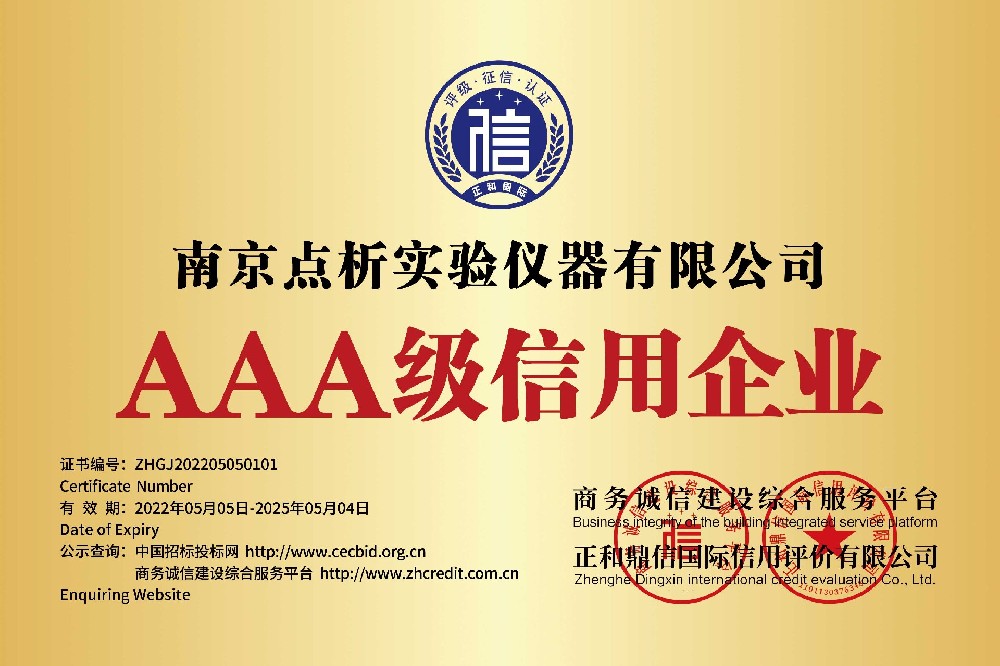 近日,南京点析获得AAA级企业信用等级证书。“AAA企业信用等级”是企业信用评定的*高级别,第三方权威征信机构通过对我司的企业综合素质、技术研发能力、管理水平、企业社会信誉、发展战略、品牌建设、财务分析等方面的深度考察和检验,*终评价结论为*高等级“AAA”级。此次在企业信用等级评价中获